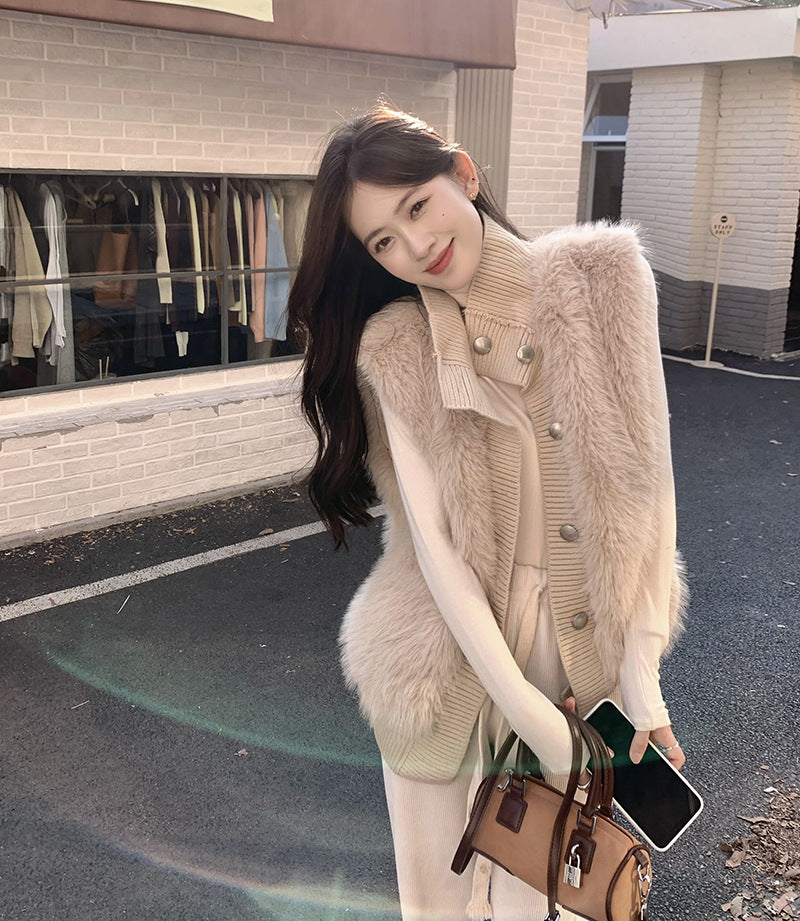 Women's Stand Collar Mink Sleeveless Sweater Coat
